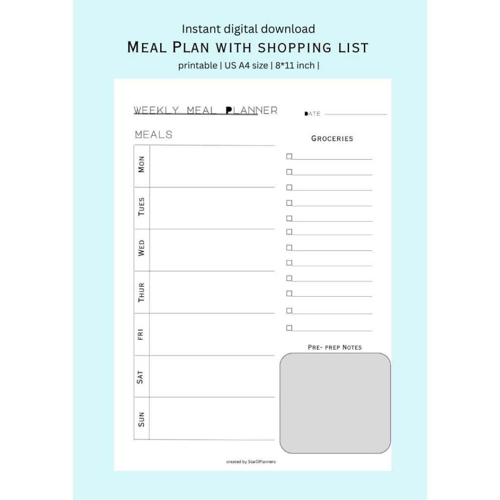 Minimalist Meal planner still functional to plan meal , Key feature : pre- prep on right side to write down what to soak ,grind, peel & chop previous day night