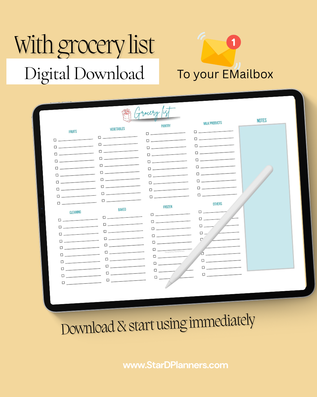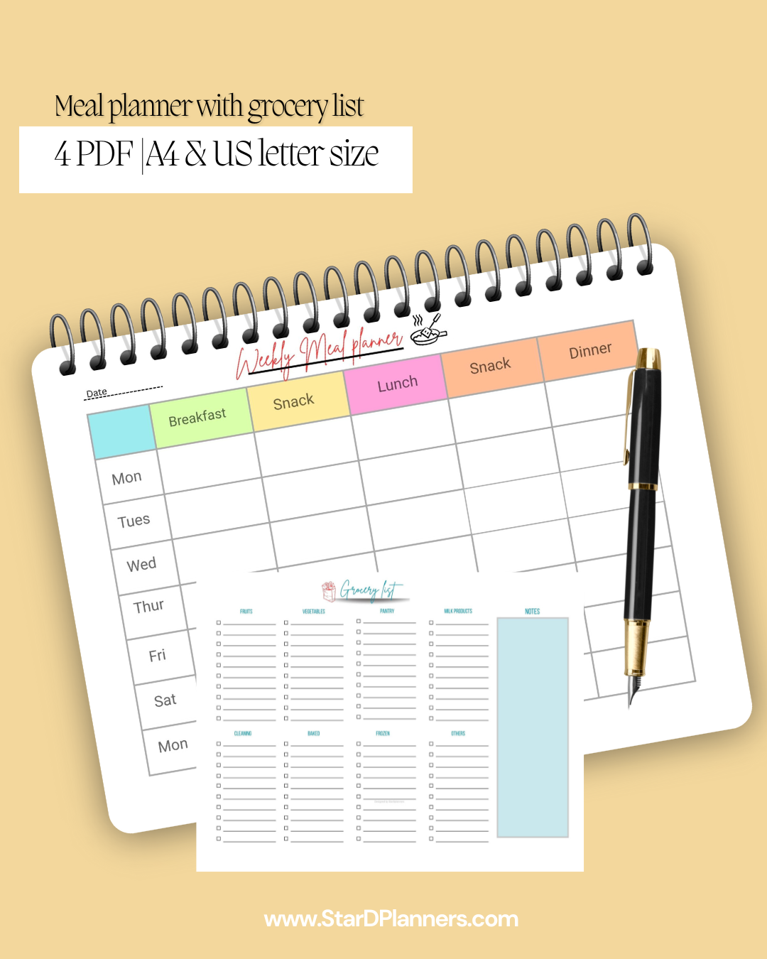 Printable Meal planner with grocery list | digital download PDF | Busy mom, homemakers, workingwomen